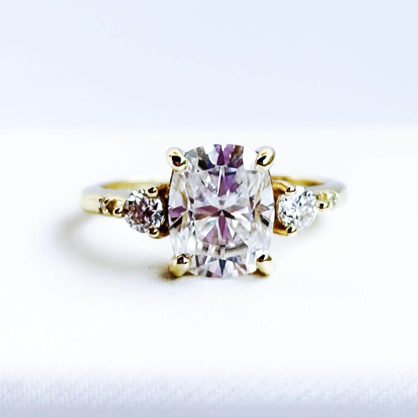 Anillo Adhara 10k Moissanita Cojín 3.0ct Con Certificado GRA