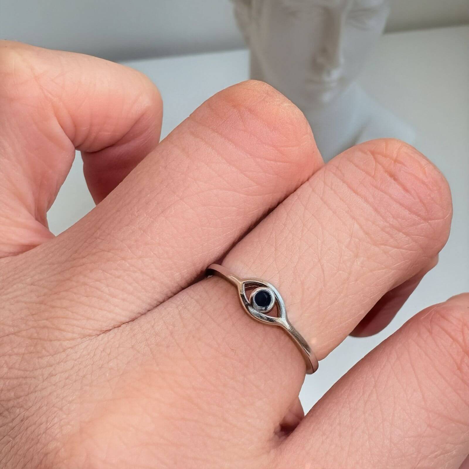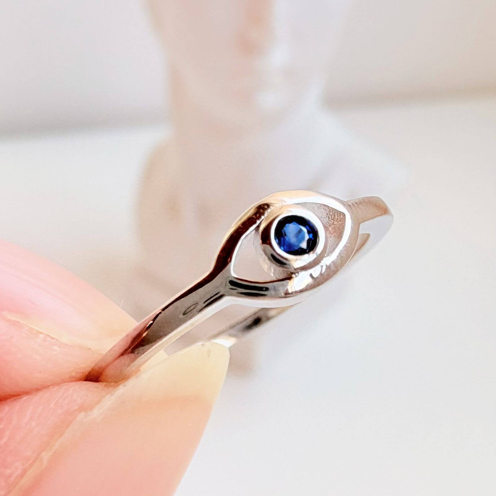 Su destello azul profundo evoca calma, intuición y esa conexión invisible contigo misma, mientras su forma delicada lo convierte en un detalle tan discreto como poderoso 💙. Aura es un anillo que no solo se verá lindo en tu mano, también será un amuleto de protección poderoso para bloquear la energía negativa nacida de los celos o la envidia
