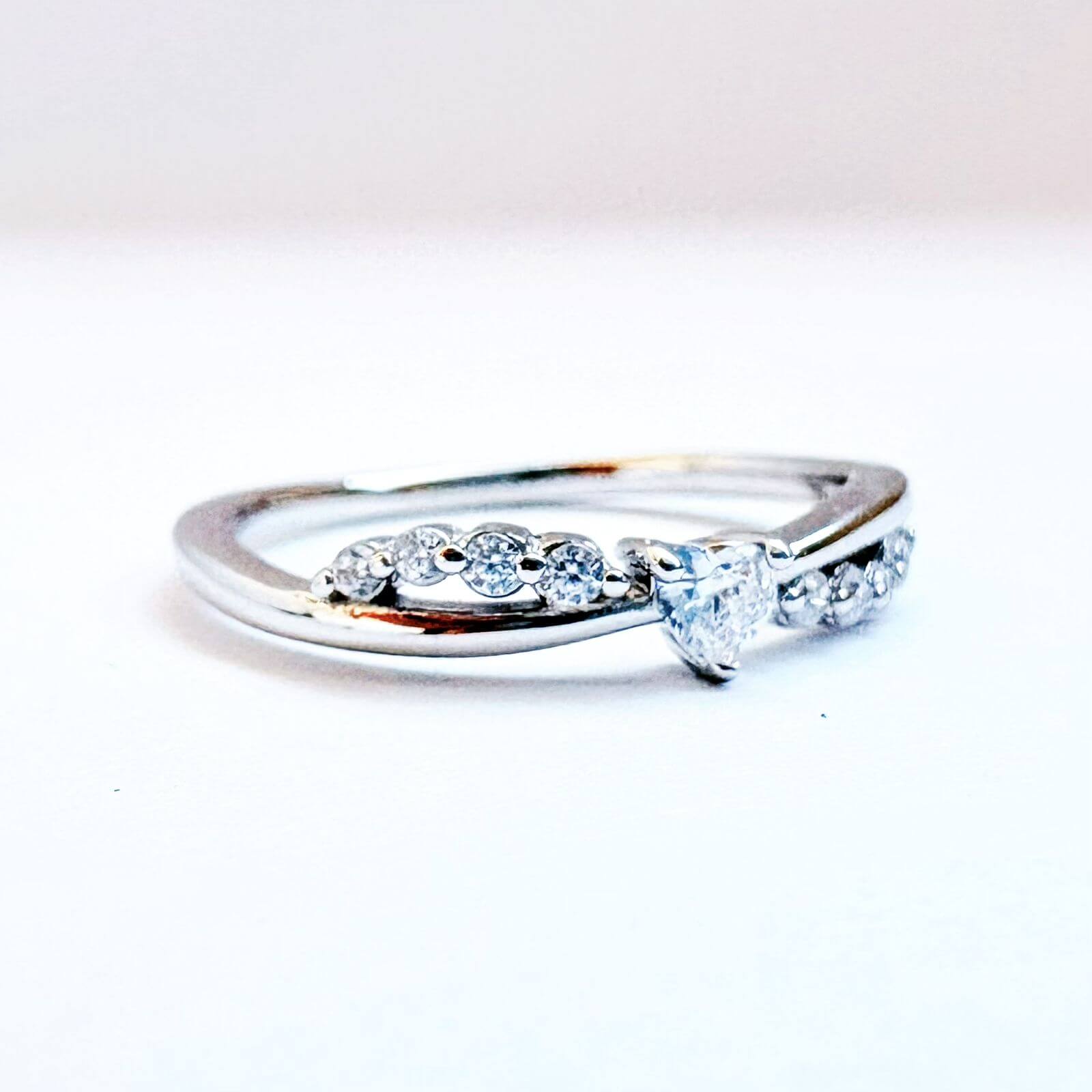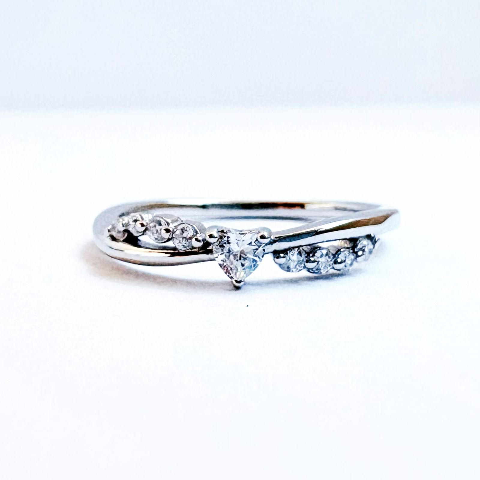 Su forma entrecruzada crea un efecto visual elegante y delicado, simbolizando la unión de dos caminos que se encuentran. A lo largo de la banda, pequeñas piedras en corte brillante se integran con suavidad, aportando destellos finos que capturan la luz de manera natural sin resultar excesivos.